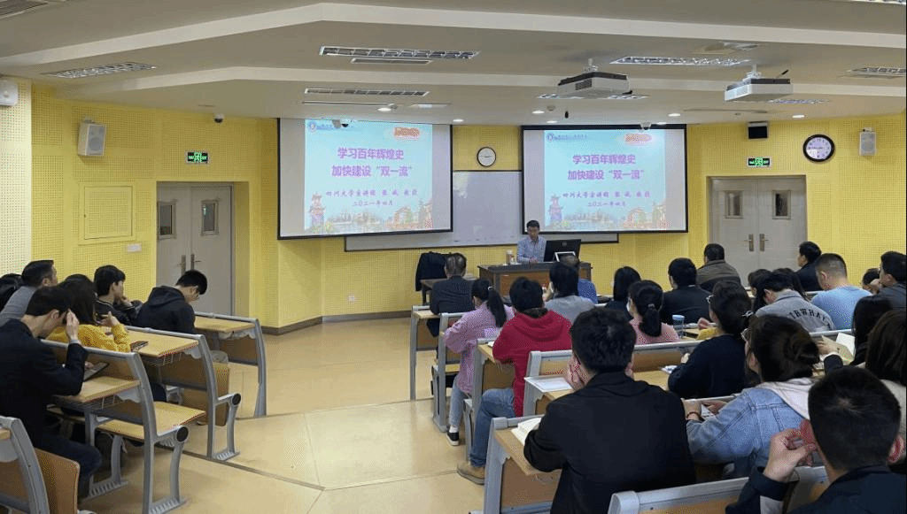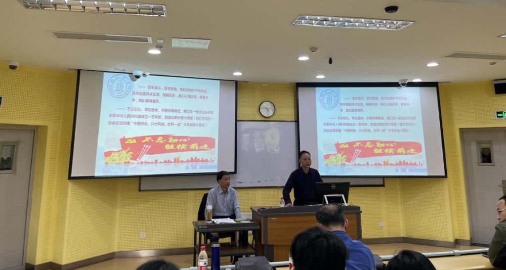 在望江校区研究生院1区104教室举行“党史学习宣讲报告会”,院党委书记尹光福教授主持,特邀学校宣讲团专家张诚教授主讲,学院领导班子成员、党支部书记及支委和师生党员近200人参加了宣讲报告会。
