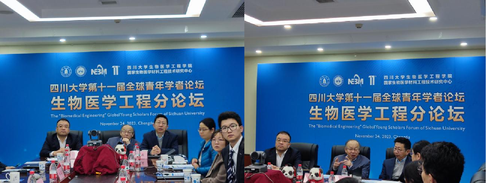 第十一届全球青年学者论坛生物医学工程分论坛以“线上+线下”会议交流的形式在望江校区生物材料楼会议室举行。来自中国、美国、英国、新加坡、荷兰等全球多所一流高校的11位青年学者受邀参加了本次分论坛活动,并进行了学术报告分享。中国工程院院士、美国工程院外籍院士张兴栋,学院党委书记韩宇,学院院长/国家生物医学材料工程技术研究中心主任王云兵,学院副院长林江莉,国家生物医学材料工程技术研究中心副主任范红松、樊渝江,学院各系主任,青年教师代表等参加了本次论坛。