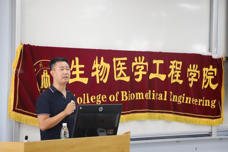 教师代表孙勇教授以“探索与创新,在生物医学工程前沿躬行”为主题,向同学们介绍了自我的成长经历和科研工作的进展,鼓励同学们保持对学科的热爱及探索的勇气,并在此基础上敢于提出新想法、新方法。最后,他希望同学们能在人生新阶段不惧困难、勇于尝试,以积极心态和坚韧决心走出属于自己的梦想之路。