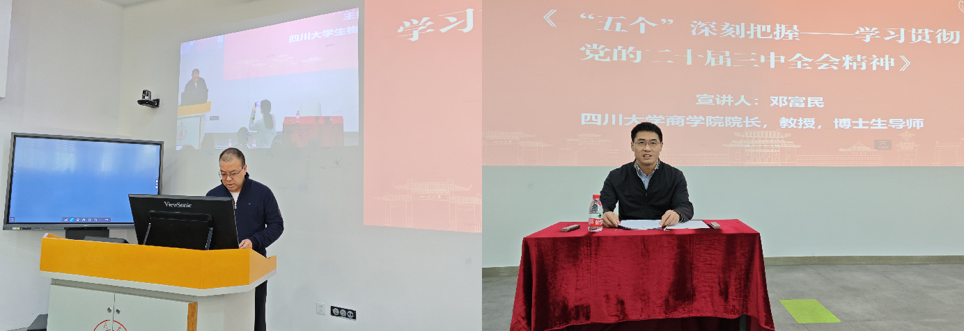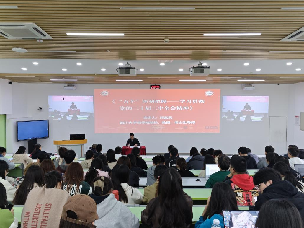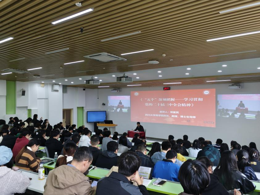 专程邀请了商学院院长邓富民教授,在望江校区基础教学楼C-01为学院党员师生开展了题为“‘五个’深刻把握——学习贯彻党的二十届三中全会精神”的学习。学院党委书记韩宇主持了本次学习。