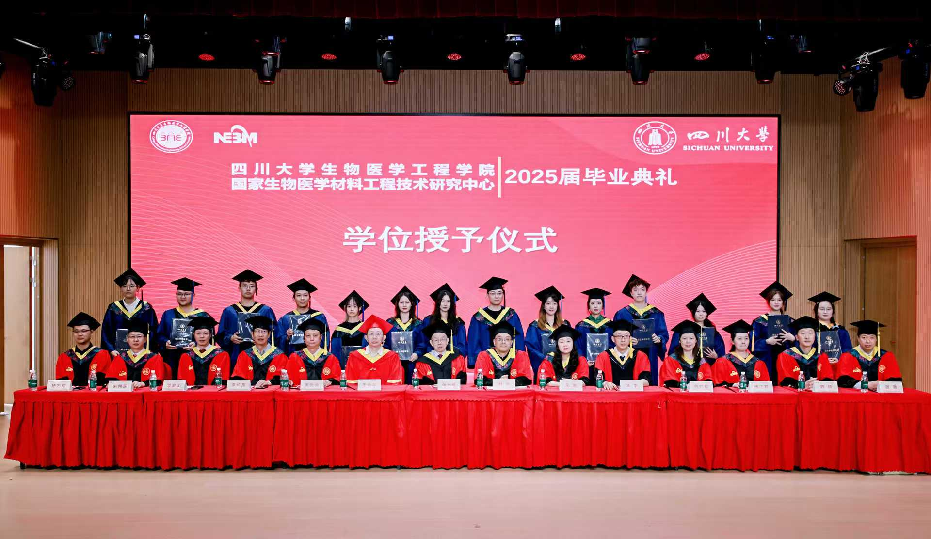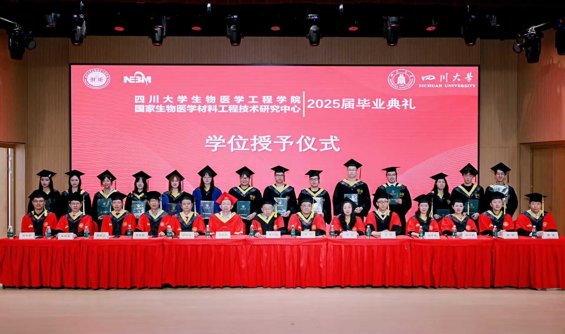 /国家生物医学材料工程技术研究中心2025届毕业典礼暨学位授予仪式在望江校区文华活动中心举行。2025届全体毕业生身着学位服齐聚一堂,共襄毕业典礼这一庄重盛典。中国工程院院士张兴栋、院党委书记韩宇、院长/国家生物材料中心主任王云兵、副院长林江莉,学院/中心研究生导师代表、辅导员老师和毕业生家长参加了典礼。典礼由院党委副书记田单主持。