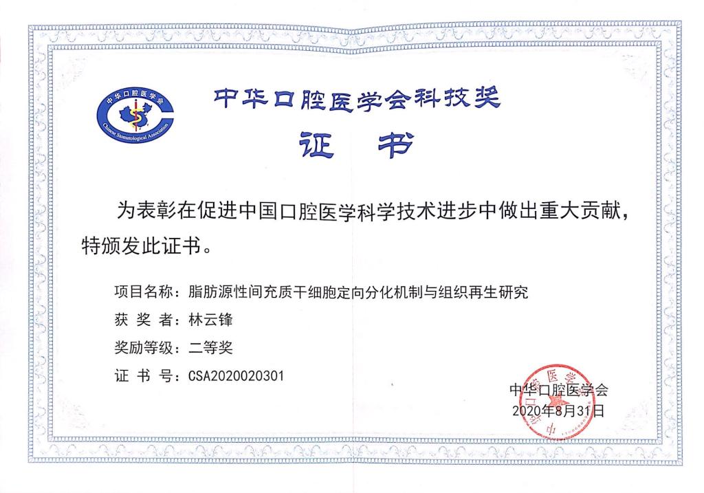 林云锋教授团队“脂肪源性间充质干细胞定向分化机制与组织再生研究”喜获二等奖。