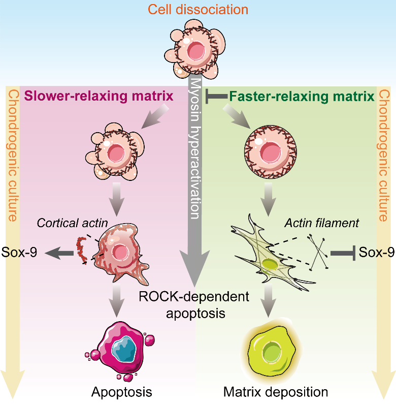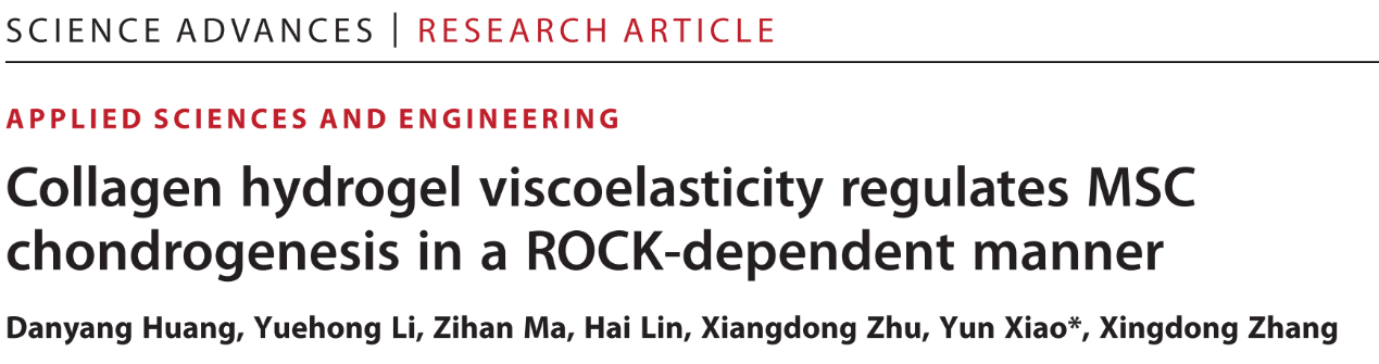 相关成果以“Collagen hydrogel viscoelasticity regulates MSC chondrogenesis in a ROCK-dependent manner”为题,发表于国际顶级期刊Science Advances。张兴栋院士团队肖芸副研究员为通讯作者,黄丹阳博士为第一作者,哔咔漫画
