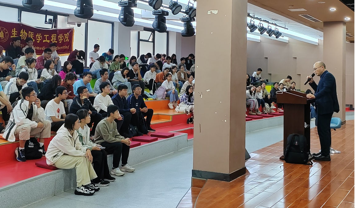 王书崎教授详细地介绍了微流控技术的行业现状,希望通过本次讲座让同学们了解生物医学工程学术前沿信息与发展趋势,建立从学习到未来职业发展的联系。同时,他对同学们寄予了殷切的期望,表示学术研究在呼唤高端人才,鼓励同学们秉持创新精神,积极投身学术研究。