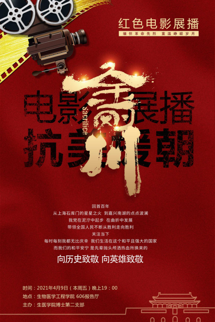 党委学生支部(博士二支部、硕士二支部、本科支部)开展了“向历史致敬 向英雄致敬”为主题的红色电影展播活动。