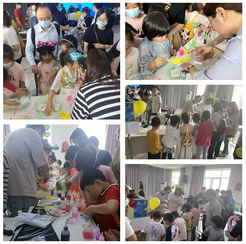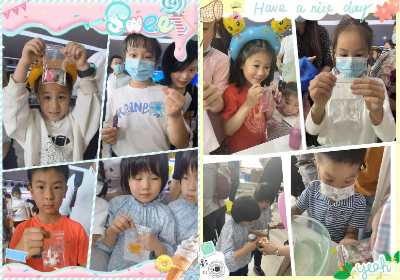 /中心教学科研支部、博士二支部师生党员联合助力,为本次趣味科普活动带来了多个精彩的实验展示。其中,博士二支部以藻酸盐与钙离子交联形成水凝胶为实验背景,让模具中流动的“颜料”与“水”相遇形成不同样式的“水精灵”。五彩斑斓的“水精灵”仿佛橙色的小螃蟹、蓝紫色渐变的雪花、又仿佛有黑色眼睛的豌豆射手、戴“头盔”的奥特曼……各式各样,五彩斑斓,激发起现场家长和小朋友无尽的遐想,受到一致的好评。