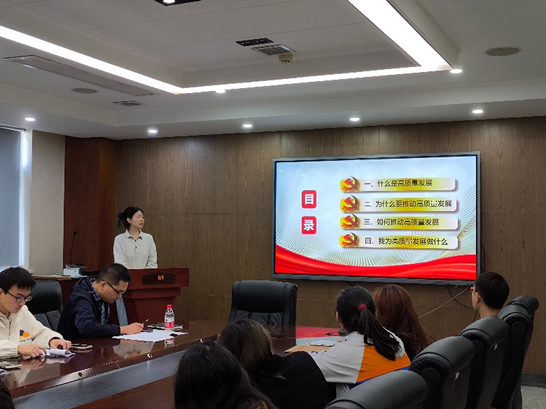 在第五党小组逻辑清晰、形式丰富的讲解中,全体党员深刻把握了高质量发展的内在逻辑和重大意义,准确理解了高质量发展的丰富内涵和现实要求。