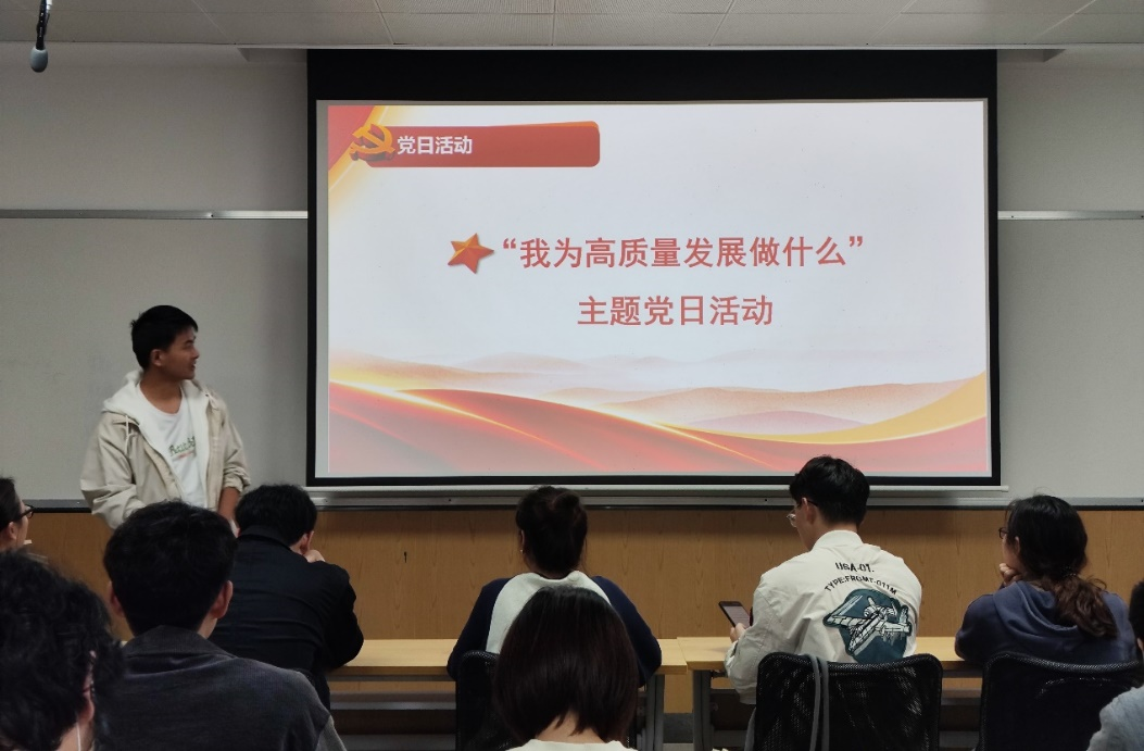 硕士二支部在中心606开展了“我为高质量发展做什么”主题党日活动。此次组织生活由支部书记王平主持。