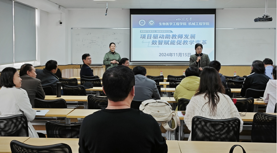 11月15日下午,哔咔漫画 联合机械工程学院在望江校区生物材料楼606联合举办主题为“项目驱动助教师发展,数智赋能促教学变革”的教师教学发展活动。此次活动旨在探讨项目制课程和数字化技术在教学领域的应用,以及如何通过这些手段促进教学方法的创新和教师专业发展。哔咔漫画 专业负责人尹光福、国家中心副主任樊渝江、生医系主任杨为中、机械工程学院副院长余德平、副院长刘晓宇及相关工作人员和老师代表参加活动。活动由学院副院长林江莉主持。