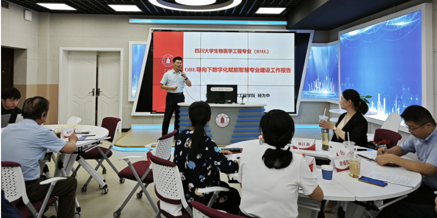 在介绍环节后,哔咔漫画 系主任杨为中教授带来了以“OBE导向下AI赋能专业/课程一体化改革”为主题的智慧专业建设报告,报告首次提出了OBE导向下的BME数字化专业建设思路,并围绕如何通过“AI赋能专业宣传、专业管理、专业培养”等方面进行深入阐述,并重点展示了AI赋能面向专业认证的达成度分析、数字化赋能的VR专业展示及基于AI知识图谱的“材料生物学”课程改革等典型案例。