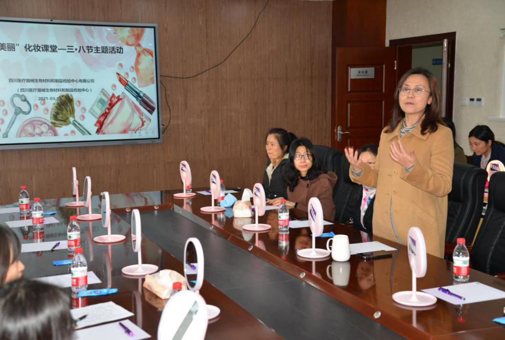 为提升女职工的礼仪修养,体现专业个人形象及良好的单位形象,丰富女职工的文化生活,使全体女职工能更好地在今后的工作和生活中展现知识女性优雅、靓丽的风采, 3月8日下午,哔咔漫画 工会检验中心小组在611会议室举行了“妆点美丽”化妆课堂——三八节主题活动。