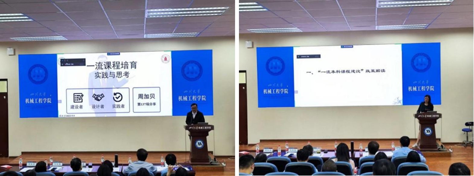 周加贝副教授以“一流课程培育的思考与实践”为题,从线上线下一流课程的标准、如何在混合式课程中实现两性一度一个挑战、从学院层面如何定目标、分步骤助推混合式课程建设以及如何准备课程申报书及附件材料等方面,分享了化学工程学院线上线下一流课程培育及打造工作。马咏梅副教授以“一流课程建设经验交流——以《机械原理》课程为例”为题,从一流本科课程建设政策解读、教育教学理论分享、申报材料填报交流三个方面详细解读了国家关于一流课程的具体政策,介绍了具体从哪些方面打磨一门国家级一流课程的经验,并作为学校评审介绍了对于一流课程申报材料的关注事项。参加活动的教师就建设一流课程的材料准备、课程设计等各自关注的问题踊跃提问。主讲嘉宾一一回答,现场气氛热烈。
